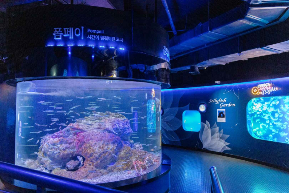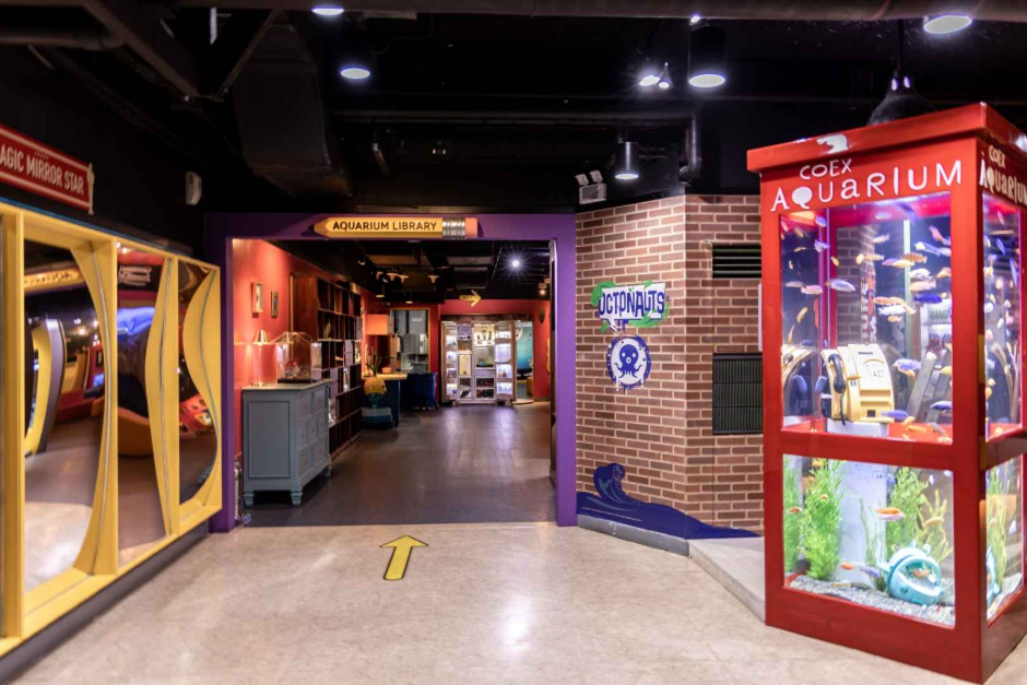 L’aquarium COEX est un gigantesque aquarium de 3 500 tonnes où sont aménagés 183 aquariums déstinés aux expositions et 90 réservoirs destinés à l’élevage. Dans les 16 zones thématiques dans le thème du ‘voyage aquatique merveilleux’, vous pouvez observer un total de 40 000 organismes sous-marins de quelque 650 espèces. De plus, le plus grand nombre d’espèces et d’organismes de requins de toute le Corée vit dans l’aquarium COEX. Chaque année plus d’un million de visiteurs venus du monde entier visitent le fameux site touristique de Gangnam, l’aquarium COEX, un endroit de relaxation où se trouvent 20 espaces de repos et une citerne à plafond ouvert d’où sont émis une quantité élevé d’ions négatifs.