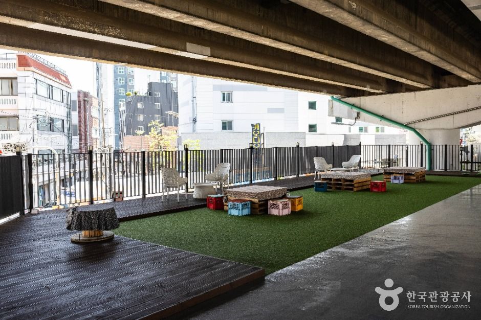 À côté de Mangmidan-gil se trouve B-Con Ground, un complexe culturel local aménagé sous la voie surélevée de Suyeong, où l’on peut profiter de divers équipements et installations. À proximité se trouve également le parc Suyeong Sajik, qui en fait un lieu idéal pour découvrir des sites historiques tout en profitant d’un espace de détente.