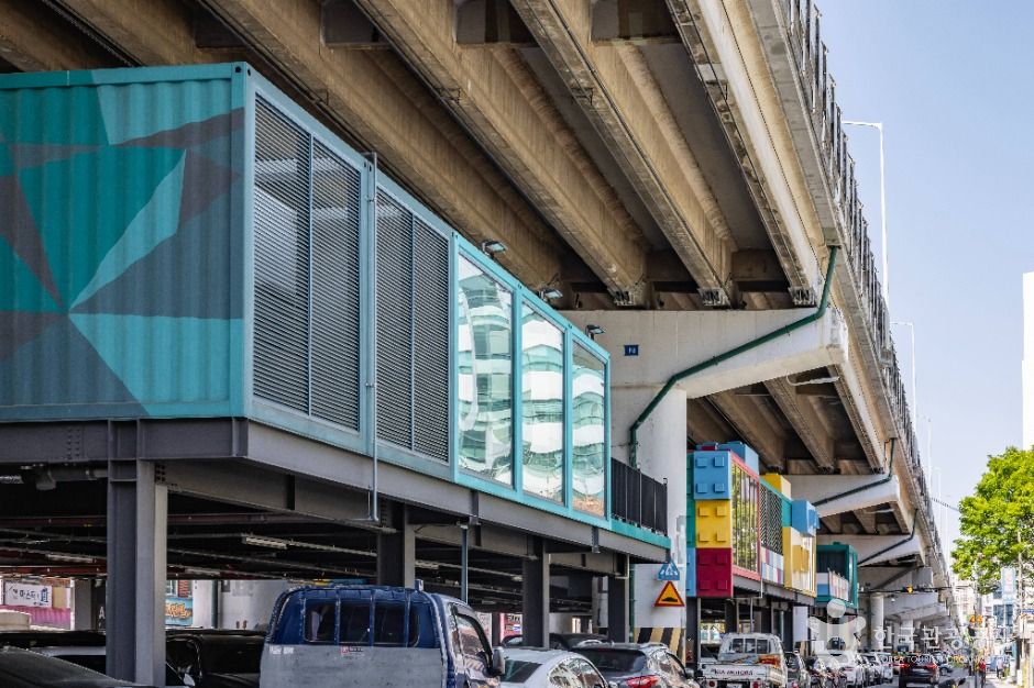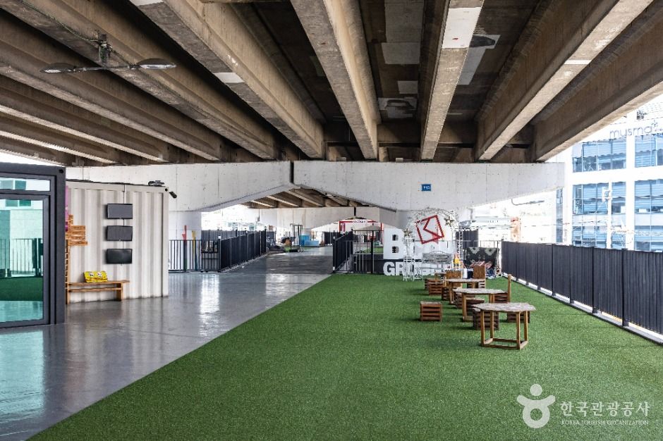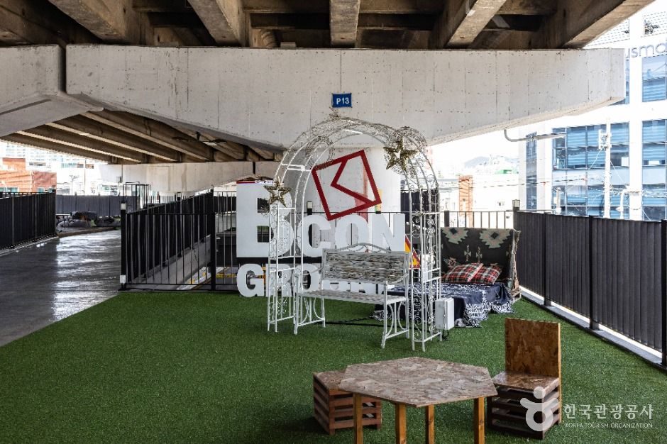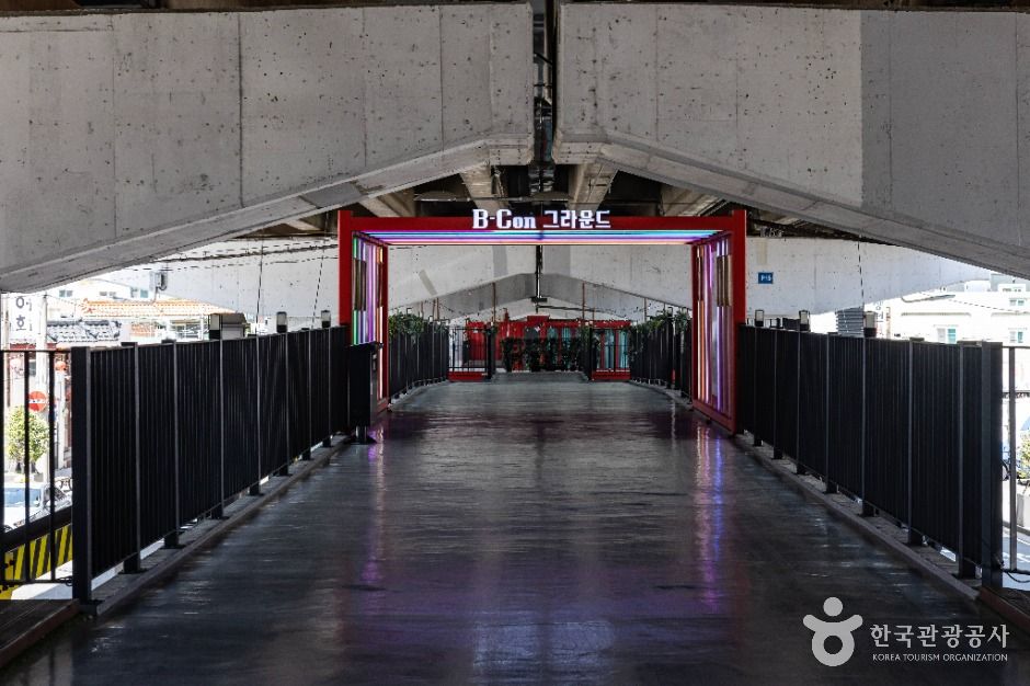 B-Con Ground tire son nom de la combinaison de B pour Busan et de CON pour container, porteur du sens « contenir Busan ». B-Con Ground est un espace réaménagé et régénéré par la ville de Busan sous la voie surélevée de Suyeong, un espace jusque-là inutilisé. En reconnectant un quartier divisé et dégradé par la voie surélevée et en offrant un espace culturel insuffisant, il est devenu un complexe culturel intégré du quotidien.