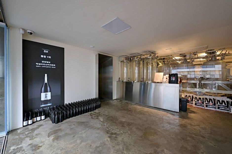 Le rez-de-chaussée est composé de la brasserie et du dépôt de makgeolli, tandis que le premier étage est aménagé en salle de dégustation et en média top. Le deuxième étage est dédié à l’exposition d’œuvres de membres de l’Association culturelle de l’artisanat de la dynastie moderne, présentant le patrimoine culturel immatériel national et fonctionnant comme une galerie pour introduire le patrimoine culturel coréen. En face de la brasserie, ‘Chunpoong Jeonjit’ est exploité, vendant des ‘jeon’, un plat emblématique de la Corée, ainsi que des aliments de saison en petites portions.