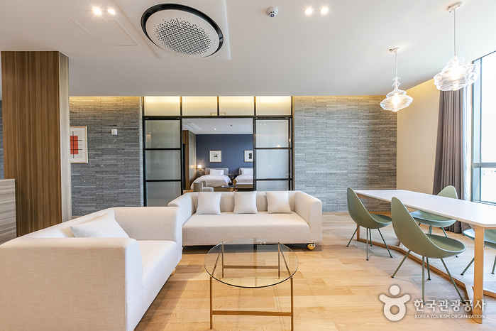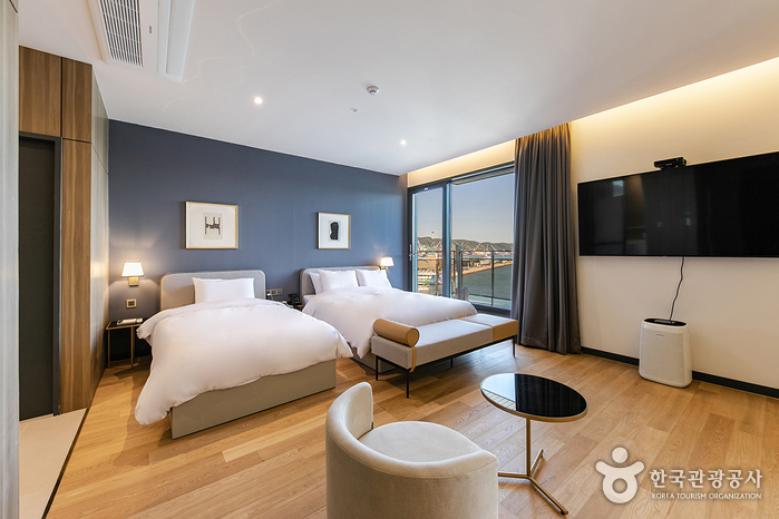 There are 54 rooms in total, including Royal Suite, Deluxe Terrace Double, Terrace Suite, Deluxe Family Twin Ocean View, Deluxe Twin Ocean View, Deluxe Double Ocean View, Deluxe Double City View, and Standard Double. All rooms except for Standard Double have bathtubs and steam closets. Terrace rooms have balconies, and Terrace Suites (on upper floors) and Royal Suites have outdoor spa systems built into their balcony. The 2nd-floor restaurant offers a breakfast buffet. Jangsaengpo Whale Museum is reachable in five min by foot, while the Jangsaengpo Whale Culture Village is reachable in nine.