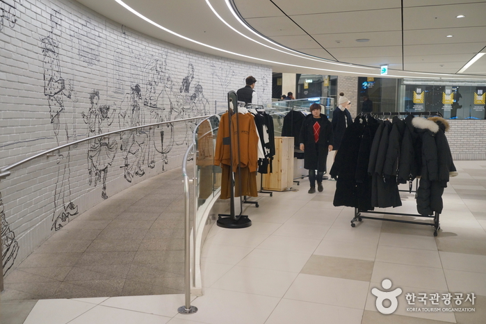 Le centre commercial Shinsegae de Gangnam a une surface totale de 74 250㎡ (environ 22 500 pyeongs) avec 4 étages inférieurs et 10 étages supérieurs. La zone centrale est un atrium au plafond de verre qui s’étend du 1er au 10éme étage, laissant entrer la lumière du jour en abondance. Chaque coin du centre commercial est décoré avec de la verdure, créant ainsi une atmosphère naturelle.
