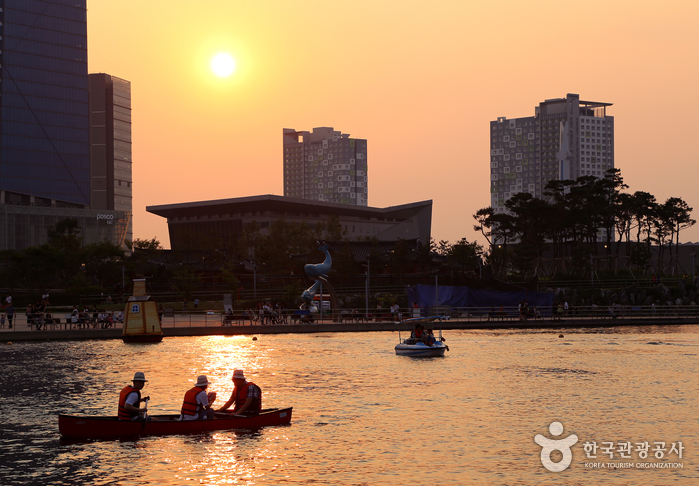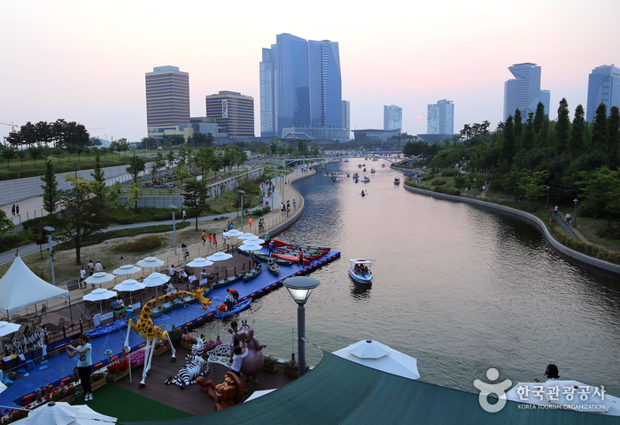 Situé au centre du grand quartier des affaires Songdo, ce parc dénommé ‘Central Park’ a été inauguré notamment pour réutiliser d’eau de pluie et réduire le niveau de chaleur sur place. Il s’agit aussi du premier parc en Corée utilisant de l’eau issu de la mer. Les visiteurs peuvent profiter de diverses pratiques sportives sur place.