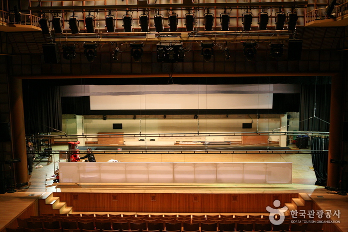 Le Centre National a été établi pour préserver et promouvoir les arts traditionnel du spectacle. Il se compose de trois salles de spectacle. Tout d’abord, le yeyak dang, la plus grande scène dédiée aux arts traditionnels du spectacle ; l’aspect extérieur du bâtiment est inspiré du palais de Suwon, la scène quant à elle, a conservé les particularités des lieux de représentations traditionnelles et a été conçue de manière à s’adapter aux différents genres musicaux, musique de cour, de palais, changgeuk (opéra), etc. La structure de la scène et des sièges n’est pas sans rappeler les cours de Corée.