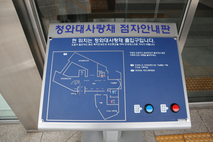Le Sarangbang de Hyoja est un petit bâtiment composé d’un rez-de-chaussée abritant une exposition relatant les 600 ans d’histoire de Séoul, et d’un étage où sont exposés des cadeaux d’hôtes étrangers prestigieux. Les visiteurs peuvent se reposer dans le jardin de derrière. Au Daegogak se trouve un tambour offert au président Kim Yeong-san en souvenir de l’ancien tambour Sinmungo. Le hall Yeonmugwan est l’endroit où le personnel des services de sécurité s’entraîne aux arts martiaux. On y trouve également une citadelle en pierre naturelle, ainsi qu’un espace de repos. Derrière le bosquet d’hibiscus siègent l’ambassade du Vatican et le pavillon Chilgung.