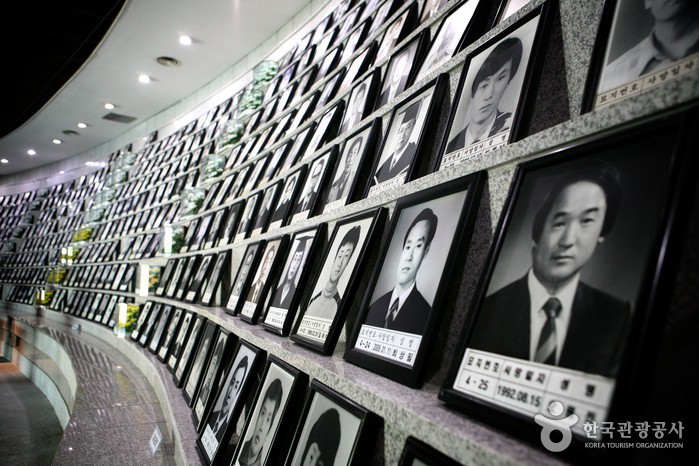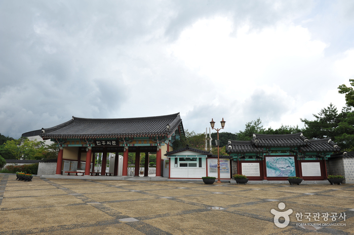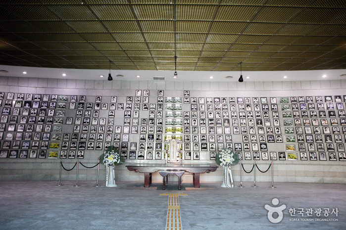 Situé à portée de vue de Mudeungsan, le cimetière 5.18 héberge les corps des manifestants de mai 1980. C’est un lieu symbole de la liberté et de la démocratie. Les corps des manifestants, livrés par chariots et camions de nettoyage, ont été enterrés en premier lieu au cimetière de Mangwol-dong. Après la réévaluation de la manifestation de mai pour la démocratie, la construction d’un nouveau cimetière fut décidée. Les travaux s’achèvent en 1997 et les corps y furent deplacés. Le 18 mai est finalement devenu un jour de commémoration nationale. Pour accéder au cimetière, il faut tout d’abord passer la Porte de la Démocratie, monument de style traditionnel, puis la Place de la démocratie, pour arriver enfin à Chunyeommun la porte de la commémoration. Un peu plus loin, se trouve, haute de quatre mètres, la Tour de la Commémoration représentant des mains jointes pour la prière, elle est un symbole de résurrection pour une nouvelle vie. En bas de la tour, se trouve un autel avec ses porte-enscens pour commémorer les morts. Après avoir passé la tour, se trouvent sur la droite et la gauche des reliefs qui décrivent des scènes de la manifestation. Un peu plus à droite, se trouve un monument commémoratif reprenant la forme de dolmen des anciennes tombes traditionnelles, ayant fonction d’autel il abrite les portraits et les tablettes mortuaires des victimes de la manifestation. En face, la Porte de l’Histoire présente images et documents du 18 mai.Le Cimetière 5.18 est un endroit indiqué pour comprendre l’histoire moderne de la Corée. Les alentours du cimetière permettent à l’occasion de faire une promenade agréable.