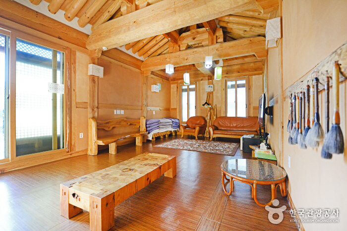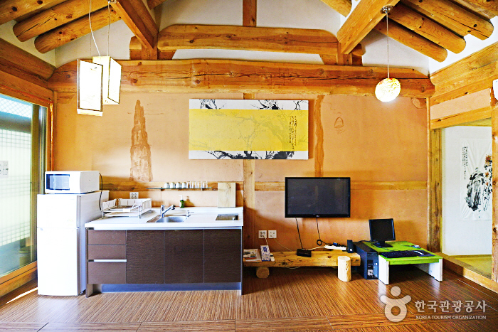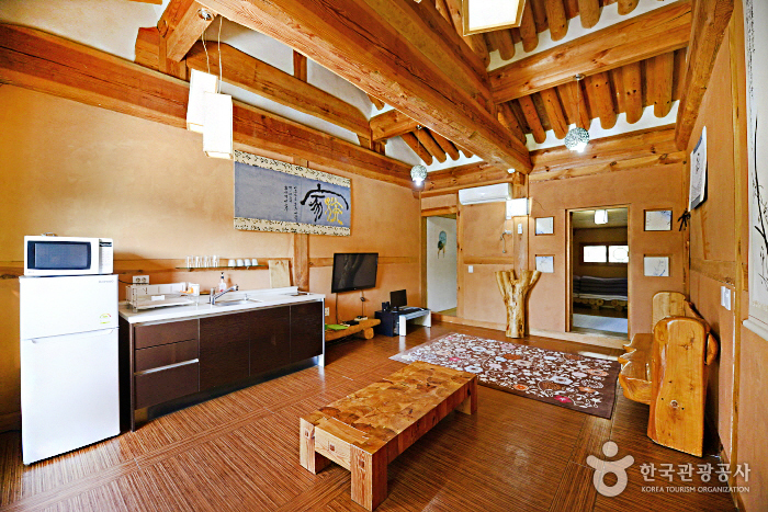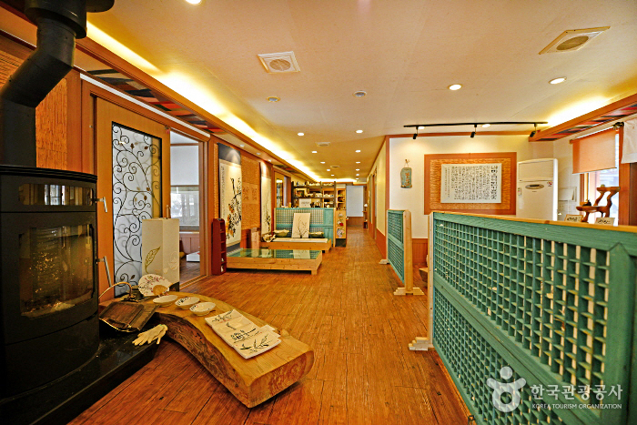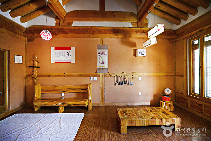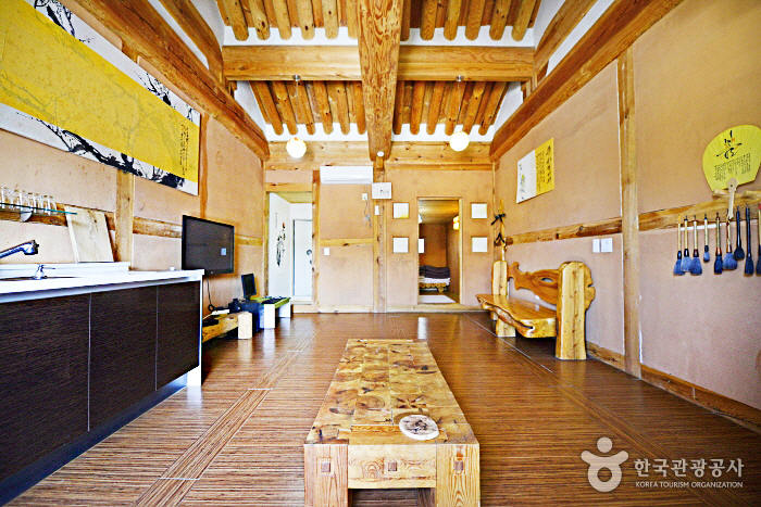 Dagagada Hanok located on Pyeonghwa-ro, Hwacheon-eup commands a panoramic view of the Bukhangang River, which originates from Paroho Lake and flows around Hwacheon. Only 2km from the place where the Hwacheon Trout Festival is held, and 3.5km from Bungeoseom Island where the Canoe Festival is held, the pension is a perfect place to stay for those visiting the area for these festivals. Hwacheon Bus Terminal is within 2.5km from the pension, and the pension also offers pickup service from the bus terminal. Dagagada Hanok has a total of six rooms, which are painted blue, yellow, purple, black, and green. The unique room interiors are made by none other than the pension owner, who majored in calligraphy. All the guestrooms include a cozy red clay room. The outdoor terrace commands a great view of the Bukhangang River, where guests can enjoy a barbecue party with their family, friends, or romantic partner. There is also a traditional tea house for guests to enjoy a sip of tea in leisure.