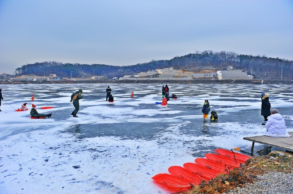 On y propose des activités hivernales idéales pour les enfants, comme la luge sur glace rappelant les souvenirs d’enfance, la pêche à l’éperlan (bing-eo) facile à pratiquer, ainsi qu’une expérience de pêche à l’épuisette. Vous pourrez également y déguster divers plats, dont le poisson éperlan frit croustillant.