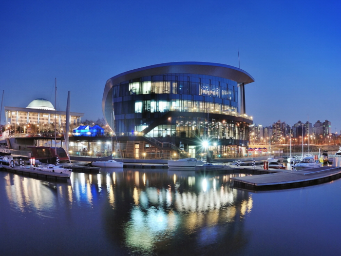 Située à Yeouido-dong à Séoul, la marina de Séoul offre des services de voilier, de la location à la maintenance et la réparation des installations d’amarrage, mais également des établissements d’enseignement et le Centre de la Marina avec son ambiance exotique. La marina de Séoul est l’endroit où une culture unique du loisir peut être vécue dans un cadre urbain. Le Seoul Marina Club & Yacht a de nombreux types de voiliers incluant des voiliers canot et des voiliers à moteur. Ils proposent des tours et des services de locations aux visiteurs. Le Centre de la Marina est composé du Cafe Breeze, d’un salle de convention, d’un restaurant japonais Ru et le bar lounge Tapas Bar Ru aux 1er, 2nd, 3ème et 4ème étages respectivement. Le centre a la forme d’un tissu de voilier dans le vent.