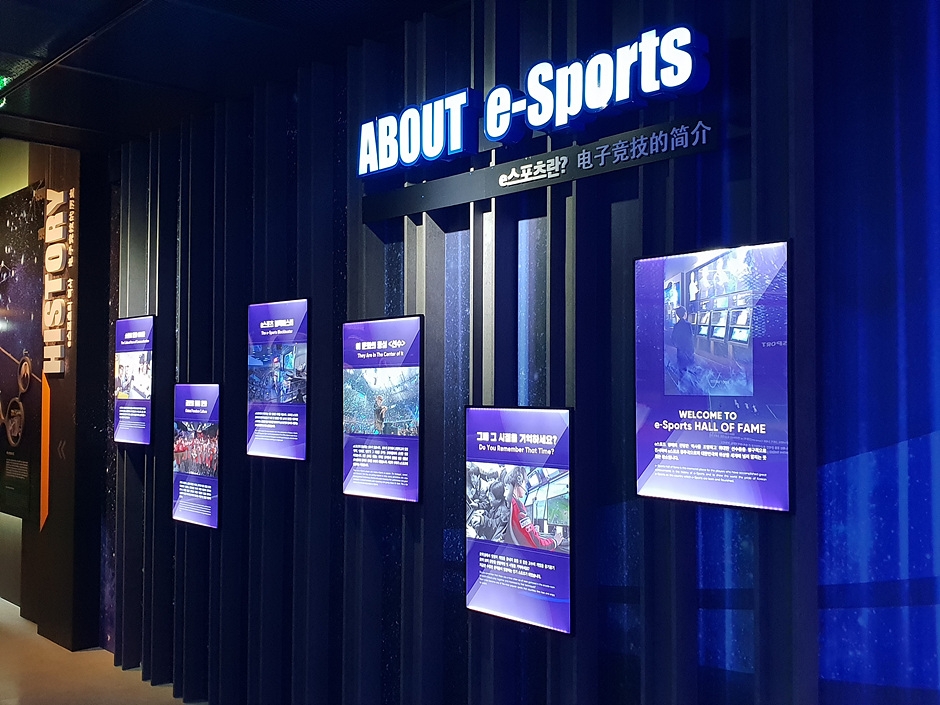 Le hall of fame de l’e-sport, est un lieu honorant les grandes figures de l’e-sport en Corée géré par le Ministère de la Culture et des Sports et par l’Association de l’e-sport en Corée. Avec ses différentes expositions, le centre permet de découvrir l’évolution de l’e-sport en Corée. Le centre propose également des activités avec les technologies du jeu vidéo.