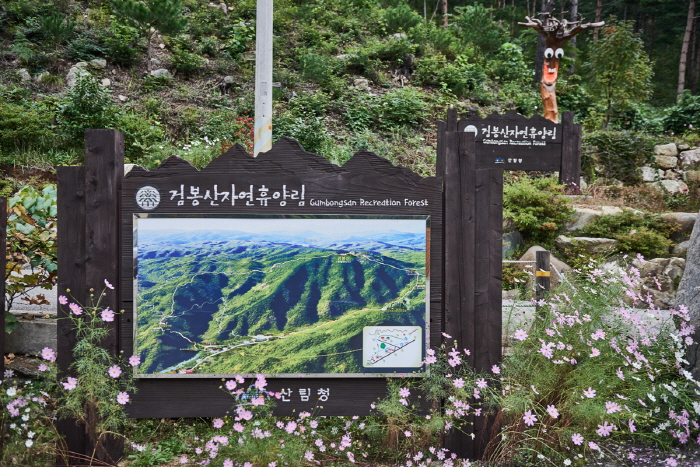 Le mont Geombongsan (681 m d’altitude) possède une majestueuse chaîne montagneuse qui relie les monts Sageumsan, Eungbongsan et Yukbaeksan. Ces montagnes représenent un défi des plus excitants pour les amateurs de VTT. Les crêtes montagneuses sont recouvertes de fleurs, incluant des azalées royales, des iris, des polygalas et des violettes. Depuis le sommet du mont Geombongsan, la vue est splendide sur le littoral à l’Est, sur le mont Eungbongsan (998 m d’altitude) à au Sud et sur le mont Sageumsan (1 092 m d’altitude) à l’Ouest. La montagne se trouve à seulement 5-10 minutes de route de la plage d’Imwon, ce qui en fait la destination idéale pour les vacances d’été. La forêt de Geombongsan se trouve au pied du mont Geombongsan, et abrite des installations d’hébergement et de confort pour les visiteurs en famille le long des vallées et des bois. La pinède accueille un terrain de camping et un terrain d’auto-camping.