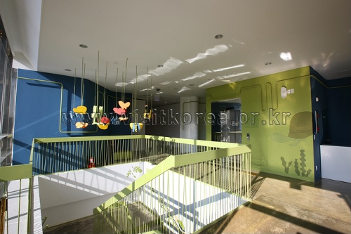 La Galerie des Enfants, située dans la Forêt du Rêve du Nord de Séoul, fut à l’origine un musée d’art ayant subi une rénovation en 2009 et ayant été converti en une galerie pour que les enfants puissent apprendre et s’amuser. Localisée à l’intérieur même de l’environnement naturel du parc, les enfants peuvent découvrir la nature tout en élevant leur imagination et développer un goût pour les arts. La bâtiment de deux étages a un design unique et un intérieur aux accents floraux, des personnages de dessins animés et des escaliers inspirés par la Nature afin d’intriguer les esprits des jeunes invités. La terrasse du second étage possède une variété d’expositions uniques et interactives pour que les enfants puissent étudier au-delà des salles de classe. L’un des thèmes récents, « Les Précipitations », vit, en tant que divertissement, les enfants porter des impérméables et des parapluies sous une bruine artificielle.
