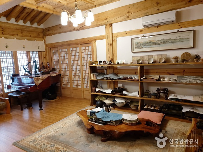 Gayeongdang is a faithful recreation of the C-shaped hanok complex, centered around a grass lawn. It is constructed entirely out of Korean pine trees, which fills the indoor spaces with a rich scent of pine. The main and annex buildings are all Korean rooms with ondol (under-the-floor heating system). The former allows guests access to the room, the living room, and the tea ceremony room, while the latter allows opportunities for grilling in the lawn. The space is also available for small events like seminars, small concerts, and marriage ceremonies.