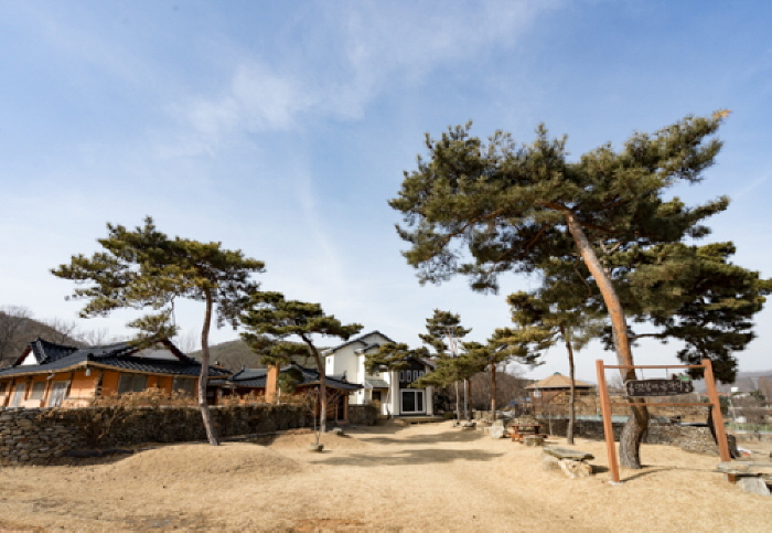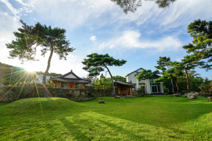 Golden Grass, located in Ganghwado, Incheon is an 80-year old hanok. Red clay wall, rafters, beams, and main floors exist in harmony. The wide lawn, pine trees, and various flowers in the yard add to the beauty of the hanok. Traditional furnaces, cauldrons, and a well create the friendly mood of a rural cottage. There are two rooms, Anchae and Sarangchae, where up to eight and four persons may use, respectively. The entire space can be rented for events like traditional wedding, outdoor wedding, and 1st birthday. Audio system, large tent, and barbeque facilities are available. Traditional Korean kitchenware such as cauldron, millstone, and rice-cake mullet are available for children to enjoy and experience different activities. Up to two pets can be accompanied free of charge and 10,000 won is charged per additional pet. Grill and charcoal are provided at 10,000 won for four guests, and cauldron with firewood is available at 10,000 won.