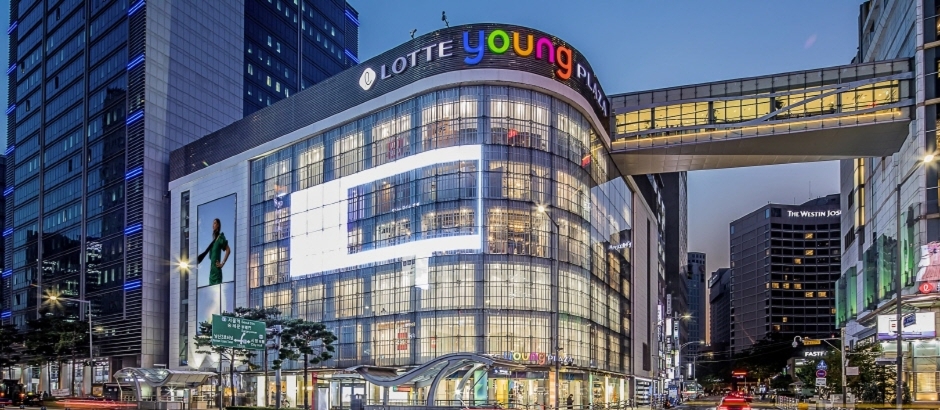 Le siège social du grand magasin Lotte s’élève dans le quartier Myeongdong (Eulgiro), le centre de la mode. C’est le quartier commercial le plus grand en Corée du Sud : visité par 2 millions de personnes par jour, il est donc très intéressant pour les touristes étrangers.