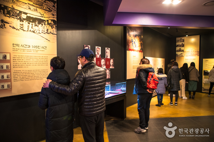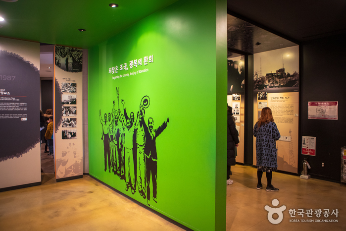 L’exposition permanente se concentre sur le Mouvement du 1er mars qui a permis d’établir le gouvernement provisoire de la République de Corée mais aussi sur la formation du gouvernement coréen qui a succédé juridiquement au gouvernement provisoire. Dans la salle d’exposition qui se trouve au 1er étage, une exposition intitulée le « Retour du gouvernement provisoire de la République de Corée » accueille les visiteurs. Par ailleurs, une œuvre d’art mural symbolique dont le titre est la « Vague de l’histoire », est installée sur l’esplanade extérieure. Cette œuvre représente la volonté du gouvernement provisoire d’obtenir l’indépendance ainsi que le dynamisme de la Corée d’autrefois, actuelle et du futur.