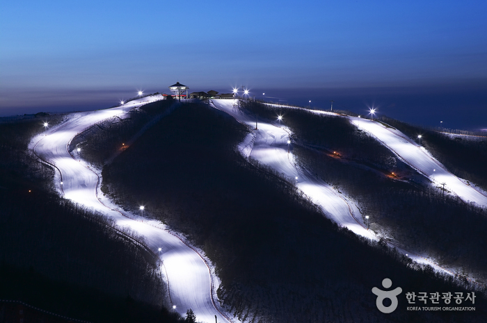 Signifiant premier et principal, High1 est une station touristique de loisirs multi-canal qui est composé du High1 Resort, l’hôtel Gangwon Land Convention, le casino Gangwon Land, l’hôtel Gangwon Land, le High1 Ski, le High1 C.C, l’hôtel High1, la résidence de la vallée et la résidence de la montagne. La station offre une pente de 4,2km de long pour les débutants, qui commence au sommet du mont Jijangsan (1,345 mètres) jusqu’au bas du mont Baegunsan, 18 pentes, 3 télécabines et 7 remontées mécaniques qui connectent la station de ski comme une toile d’araignée.