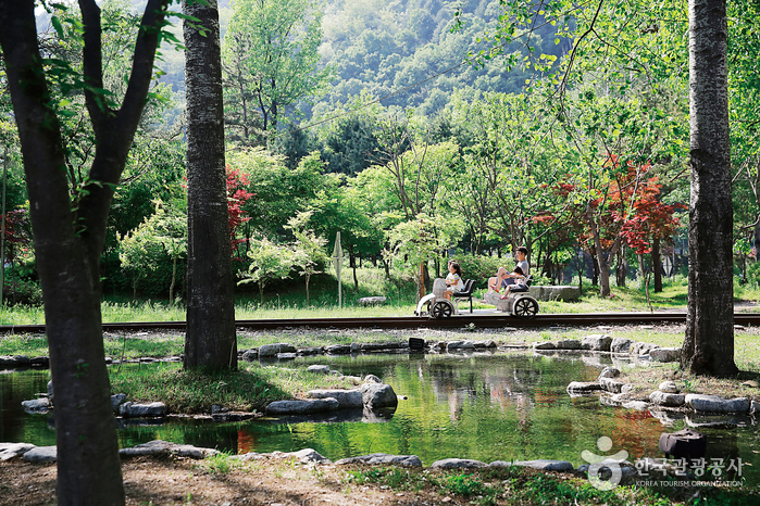 L’île de Bungeoseom est apparue dans les eaux douces du barrage de Chuncheon, et son environnement présente un excellent état de conservation. On y trouve une terrain de football, un court de tennis, un terrain de futsal, un sentier de promenade au bord de l’eau, une scène aquatique, des toilettes et toutes sortes d’équipements de qualité. Les nombreux espaces de repos servent aussi bien à la détente qu’au sport. Les parties boisées de l’île ont servi de décors pour de nombreux films et séries télévisées.