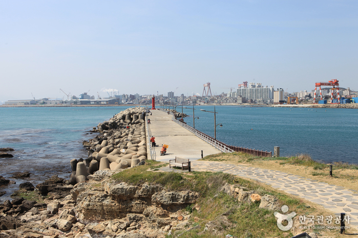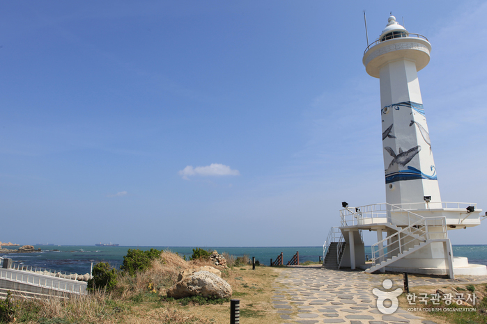 Si on continue jusqu’aux rochers de la plage, on peut trouver le squelette d’une mâchoire de baleine, qui atteste que Ulsan était jadis un site important pour la pêche des baleines. Si on continue en suivant le parapet, on arrive enfin à Daewangam. C’est un îlot constitué par un grand rocher, mais on peut facilement y avoir accès grâce au pont en fer. Arrivé du côté de Daewangam, on peut apprécier une belle vue au belvédère, à la pointe est. Après être sorti de Daewangam en se dirigeant en sens inverse du sentier du bois de pins, on trouve la promenade du parc Ulgi. À mi-chemin se trouve le phare d’Ulgi ; il conduit tout droit à la mer de l’Est.