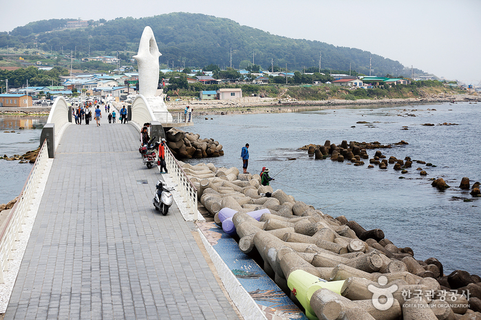 Plusieurs poissons tels que le poisson-sabre, le thazard oriental, l’anchois ainsi que la sériole couronnée sont pêchés ici. Vous pouvez en acheter directement au marché aux poissons et au centre aux poissons à côté du port pour pouvoir en déguster sur place. Le sentier le long de la digue mène au phare de Seuldo, lieu idéal pour prendre des photos. Par ailleurs, la route côtière menant à la fois au port de Bangeojin (parc de Daewangam), au phare d’Ulgi et à la plage d’Ilsan offre également un paysage romantique pour les promenades.