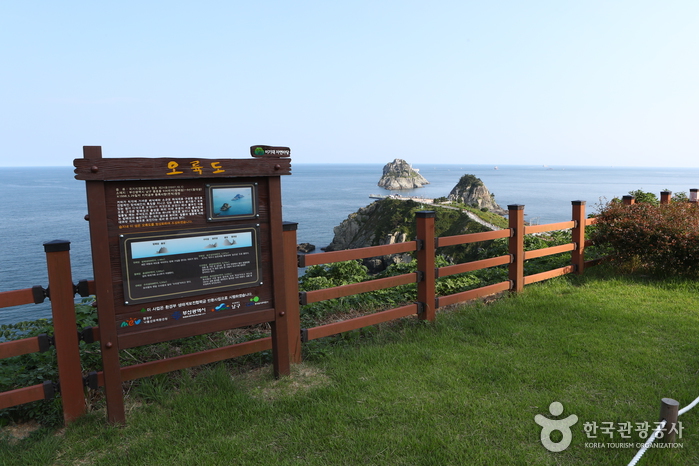 Oryukdo est un petit ensemble de cinq ou six îlots selon les marées, rattaché juridiquement à l’arrondissement Nam-gu de la ville de Busan. Désignés comme un monument de Busan ces îlots sont constitués de rocs. En dehors de l’îlot qui abrîte un phare, Oryukdo est inhabité. Les îlots sont connus sous les noms de Wusakdo (32m), Suriseom (33m), Songgotseom (37m), Gulseom (68m) et Deungdaeseom (28m) cependant Wusakdo est parfois désigné par les noms de Bangpaeseom et Solseom car leurs bases même si elles se confondent sont séparées. Ainsi à marée haute les deux îlots semblent se séparer tandis qu’à marée basse ils deviennent Wusakdo. Le nom de cet ensemble-Oryukdo, les cinq six îlots – est donc basé directement sur l’observation de ce phénomène de la nature.