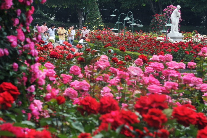 Le Jardin de roses Everland fleurit de magnifiques fleurs pendant un mois. Lancé en 1985, le festival des roses s’ouvre chaque année au mois de mai. Avec une roseraie de 20 000 m², les visiteurs peuvent admirer différentes sortes de fleurs tout en profitant du parc d’attractions.
