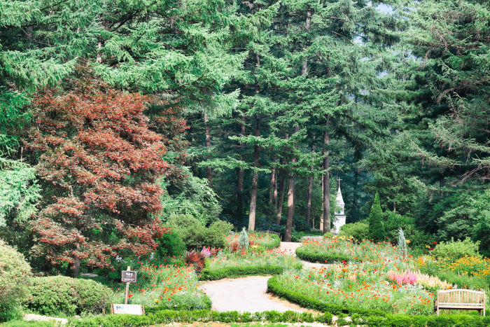 Les 20 différentes sections du jardin sont connectées par des chemins bucoliques, du gazon tiré à quatre épingles et des parterres de fleurs. Le jardin Sukgeun Garden a la forme de la péninsule coréenne, les fleurs sont tout aussi belles côté Nord que côté Sud, symbolisant le désir de réunification. Cette partie du jardin est l’une des parties la plus populaire auprès des visiteurs.