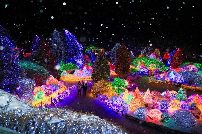 Le Jardin du Matin Calme, situé à Gapyeong dans la province de Gyeonggi-do, est une attraction touristique prisée où l’on peut admirer plus de 5 000 espèces de plantes réparties sur un vaste jardin d’environ 330 000 m². Le Festival des lumières étoilées multicolores (Osaek Byeolbit Jeongwonjeon) a été le premier à introduire un festival lumineux d’hiver dans un jardin, suscitant un grand engouement. Organisé chaque année de décembre à mars, il transforme le jardin en un spectacle féerique de lumières grâce à des ampoules LED écologiques, créant ainsi un paysage nocturne d’une beauté exceptionnelle.