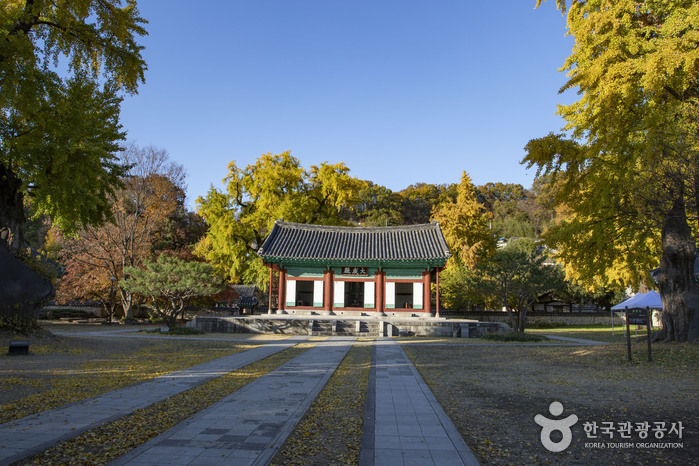 Elle abrite les plaques commémoratives de sept confucianistes chinois, y compris Confucius, et de dix-huit savants coréens dans le bâtiment principal appelé Daesungjeon. Composée de ce bâtiment et de seize autres, cette école figure parmi les plus grands établissements d’éducation de par sa taille.