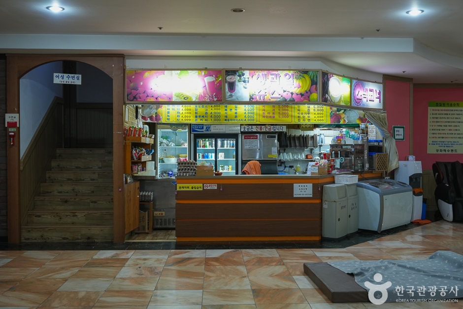 Kanghwa Haesoo Land est un sauna d’une superficie d’environ 4 300 m², situé à côté du pont Chojidaegyo à Ganghwa, et réputé comme l’un des plus grands du pays. Le bain d’eau de mer y est alimenté par une eau marine souterraine jaillissant à 560 m de profondeur. Après avoir traversé des couches rocheuses, cette eau conserve une grande pureté. L’eau de mer de Kanghwa Haesoo Land contient une teneur équilibrée en minéraux. Grâce à l’osmose, la différence de salinité entre le corps et l’eau favorise l’élimination des toxines tout en permettant l’absorption efficace des minéraux nécessaires. Ce processus améliore la circulation sanguine et, par ses effets antibactériens et détoxifiants, apporte des bienfaits notables pour des affections telles que l’arthrite, les névralgies ou les maladies cutanées atopiques, tout en contribuant à la beauté de la peau. Outre le bain d’eau de mer, l’établissement dispose également d’installations de jjimjilbang, comprenant notamment des salles de repos climatisées, une salle à l’argile jaune et une salle de sel, offrant ainsi divers espaces de détente et de bien-être.