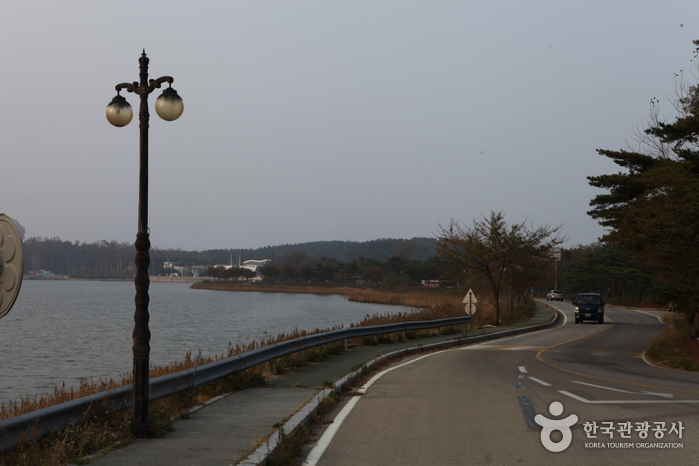 Près de la plage, le lagon Hwajinpoho est l’un des plus beaux lagons de Corée, avec ses paysages gracieux, entourés de forêts de pins et de champs de ronces douces. Le nom, Hwajinpo fait d’ailleurs référence aux nombreuses ronces douces qui fleurissent en abondance dans la région.