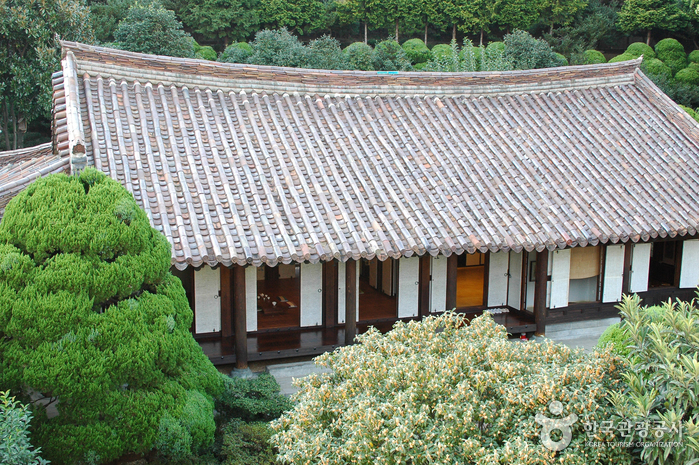 Le bâtiment central en forme de L de la demeure historique est plutôt large et est composé d’une veranda en bois, d’une petite chambre, d’un hall, d’une chambre principale, d’une cuisine, et d’une autre petite chambre. Les doubles portes qui mènent vers les pièces chauffées par le sol (‘ondol’ en coréen) sont composées à la fois de portes coulissantes et de portes battantes. La demeure est un modèle d’architecture en Corée, elle est restée conservée dans son état initial.