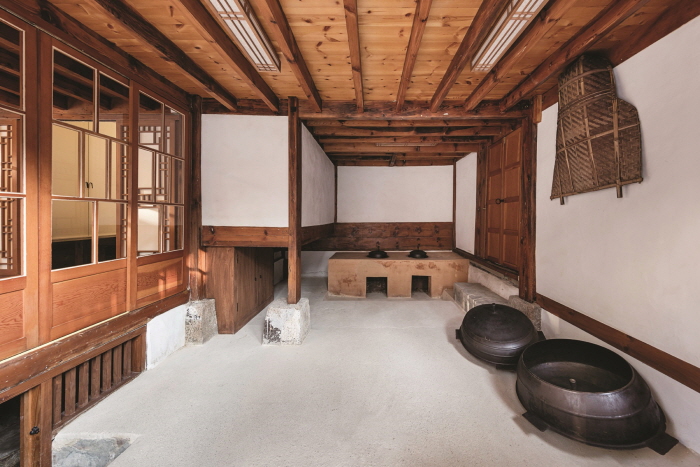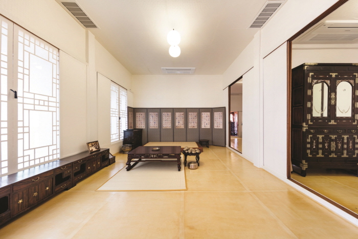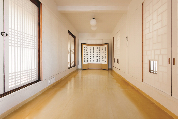 Cette demeure a aussi la particularité de relier les deux pavillons principaux (appelés ‘Sarangchae’ et Anchae’) par un couloir alors que ces pavillons sont traditionnellement séparés dans les autres demeures de ce type. Ainsi, il n’est pas nécessaire de sortir pour se déplacer entre ces deux espaces. On trouve également des couloirs construits à la manière japonaise, des sols avec tatami, des murs de briques rouges, et des fenêtres en verre, autant d’éléments qui reflétent l’évolution des goûts architecturaux de l’époque. Autre spécificité du lieu, le pavillon Sarangchae est construit sur 2 étages, un trait unique pour une maison de ce type en Corée.