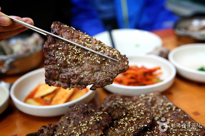 On trouve dans le quartier de Songjeong à Gwangju une rue consacrée au plat tteok galbi. Il s’agit d’un endroit très prisé des habitants de ville pour l’excellence des plats servis tteok galbi. Ce plat a la particularité ici d’être préparé non seulement avec de la viande de boeuf mais aussi de la viande de porc.