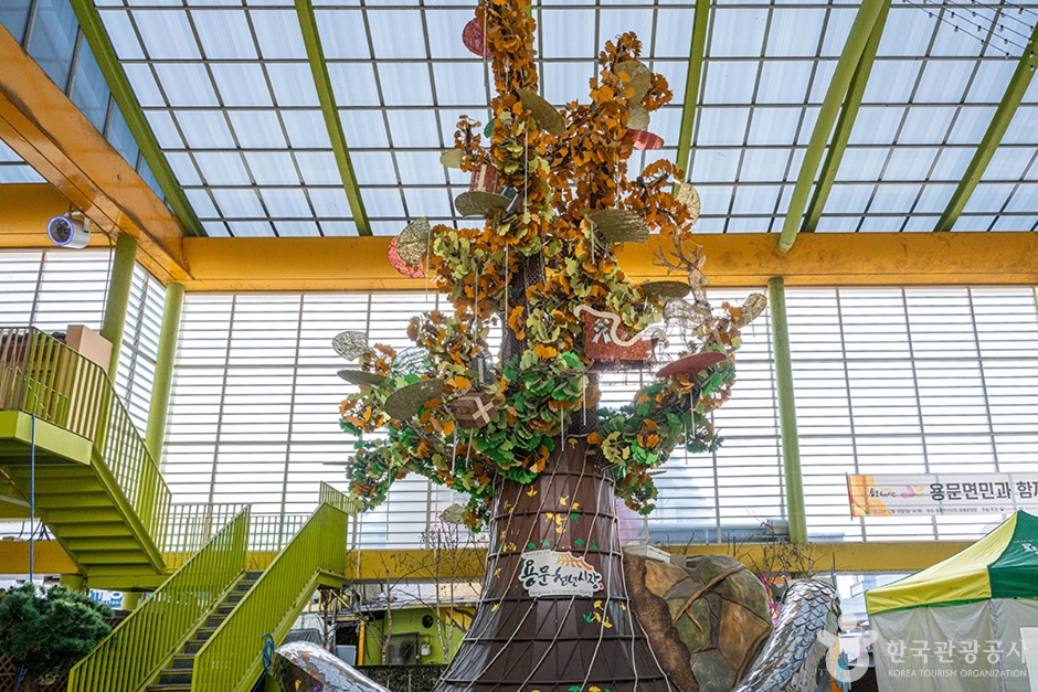 Le marché millénaire de Yongmun est l’un des trois grands marchés traditionnels du comté de Yangpyeong. En descendant à la gare de Yongmun, sur la ligne Gyeongui–Jungang, on accède directement à ce marché traditionnel qui s’ouvre tous les cinq jours et réunit plus de 200 étals. Grâce à la proximité du complexe touristique du mont Yongmun et du musée écologique des poissons d’eau douce, il est également réputé comme marché à vocation touristique. Ce n’est pas seulement un lieu de shopping, mais un marché animé de culture et d’art, regorgeant de spécialités culinaires, de spectacles et d’activités de loisirs.