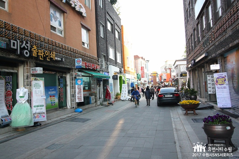 On y trouve de nombreux cafés et ateliers d’artisans, dont certains reversent leurs bénéfices aux artistes. Le quartier est également connu pour ses rues thématiques comme la rue des ateliers, la rue du poulet frit et le marché de Jidon, faisant de l’ensemble un itinéraire parfait pour une promenade romantique autour de la forteresse de Suwon.
