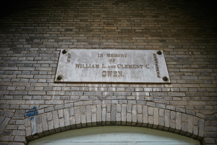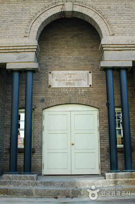 Clement Owen était un étranger venu à Yangrim-dong, Gwangju dans les années 1900. Il dirigea des activités religieuses et de volontariat médical avec son épouse infirmière, morte de surcharge de travail en 1909. Il souhaita construire un hôpital au nom de son grand-père, mais comme les travaux religieux étaient plus urgents, il construisit un lieu de commémoration en premier. Cependant, il mourut avant d’avoir matérialisé son rêve. C’est la raison pour laquelle le panneau d’affichage est orné du nom de son grand-père William L. Owen. La pancarte montre en anglais et caractère chinois les mots « A la mémoire de William L. et Clement C. Owen.”