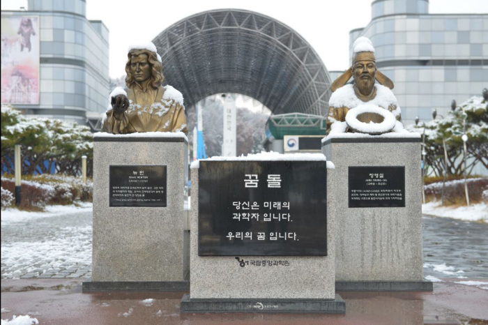 A l’extérieur du hall Cheomseongdae se trouve une machine à évaluer le temps, de l’époque de Goryeo; des reproductions de dinosaures et un engin à vapeur. Ces expositions permettent de mieux comprendre les théories de la science.