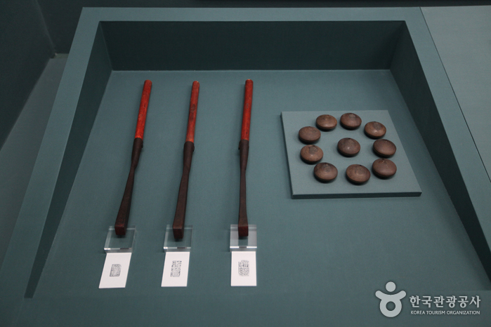 1. Symboles et documents royaux (Royal Symbols and Records) – La dynastie Joseon soutenant les idéaux confucianistes, le roi était donc considéré comme le souverain absolu, et le couple royal faisait figure, avec la reine, de parents de tout le peuple. Pour rehausser son autorité, la dynastie a fait fabriquer divers symboles royaux.
