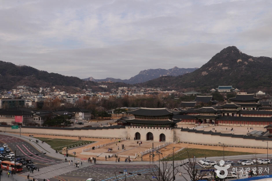La Porte Gwanghwamun a été construite de granite. Au centre, il y a une entrée ressemblant à un arc-en-ciel, appelée Hongyemun, et au-dessus, se trouve la tour de la porte. La Porte Gwanghwamun renferme un souvenir douloureux dans l’histoire de la Corée. Durant l’ occupation japonaise de la Corée, de façon à tuer les esprits des citoyens coréens, le général du gouvernement japonais avait détruit la porte et construit son propre bâtiment gouvernemental. L’apparence réelle de la porte est celle de 1968 lorsqu’elle a été reconstruite en utilisant du béton, et elle est située environ à 10m derrière le point d’origine. Pour restituer la forme d’origine de la porte, le gouvernement a entrepris des travaux d’aménagement à partir de 2006, ces travaux se sont terminés le 15 août en 2010.