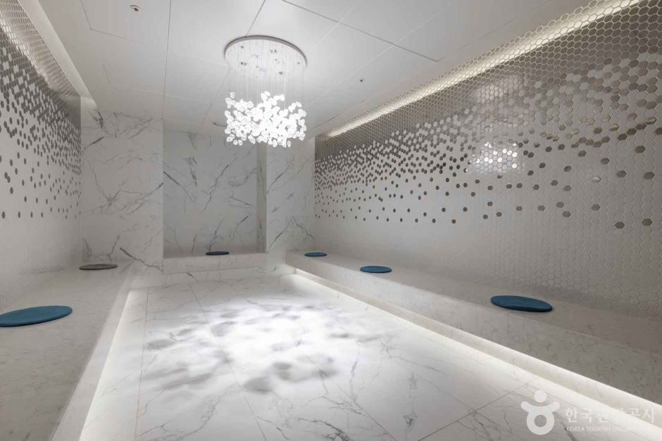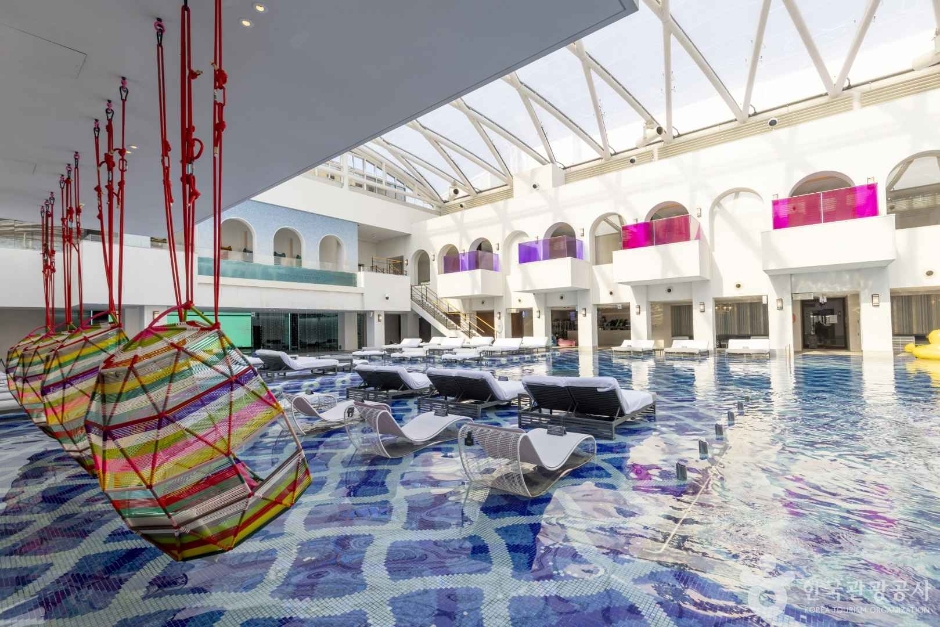 Situé à Yeongjongdo, dans le district de Jung-gu à Incheon, Paradise City Cimer a ouvert ses portes en septembre 2018 au sein du complexe Paradise City. D’une superficie d’environ 13 000 m², il peut accueillir jusqu’à près de 2 000 personnes simultanément. Le nom Cimer est formé à partir des mots français ciel (ciel) et mer (mer), évoquant la rencontre du ciel et de la mer dans un espace unique. Dans la zone d’aqua-spa, à la fois luxueuse et tendance, les visiteurs peuvent profiter non seulement d’installations de baignade, mais aussi d’un media art LED dynamique et de pool parties à concept différencié. Le site comprend également une zone de spa avec jjimjilbang, un sauna ainsi que divers espaces de détente, offrant une expérience de relaxation complète.