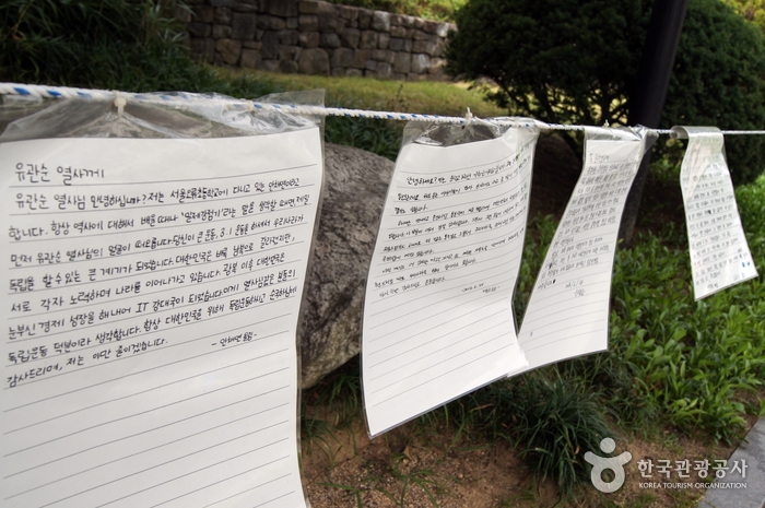 Dans le Parc de l’Indépendance de Seodaemun se trouvent, le vestige historique N˚ 32 (Dongnimmun), N˚ 33 (Yeongeunmunjucho), le hall de l’Indépendance, le monument des martyrs, et le monument de la déclaration de l’Indépendance du 1er mars.