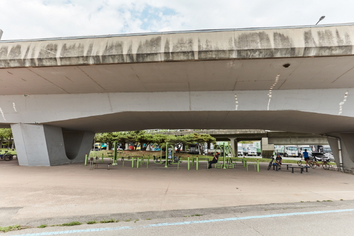 Il y a une piste cyclable passant par le parc et reliant ce dernier aux autres du fleuve Han. Tous les mois de mai, cette piste est bordée d’une pelouse luxuriante et de magnifiques roses, faisant d’elle un endroit idéal pour les amis, couples ou familles désireux d’y prendre des photos.