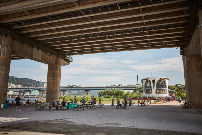 En outre, le parc propose des équipements pour les X-Games, pour l’escalade mais aussi des croisières en bateau, un marché aux puces (le samedi), des pièces pour les mères qui allaitent ainsi que des salons pour les femmes. Ce qui en fait un endroit en vogue pour les habitants de Séoul.