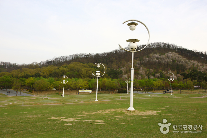 De nombreux équipements sont disponibles, notamment un terrain de football, un terrain de baseball, un gymnase, une piscine, un cours de tennis, un terrain de rollers, un terrain de golf et une salle de judo. Et on peut non seulement y pratiquer du sport, mais aussi se cultiver grâce à la bibliothèque Duryu, la colline des sculptures, la tour commémorative du 22 février, une salle de concert en plein air, le bassin de la cathédrale et la fontaine Osaek, le temple de Daeseongsa, le temple de Geumyongsa et les chutes de Byeokcheon.
