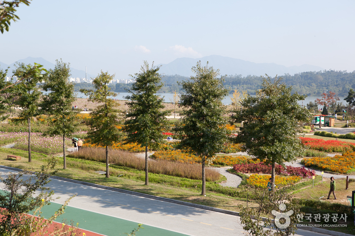 Le parc Hangang de Guri offre est un lieu où vous pouvez sentir la brise fraîche venue de la rivière et vous reposer dans un joli cadre naturel. Ses fleurs à profusion sont particulièrement belles au mois de mai avec la floraison de la moutarde des champs et au mois de septembre quand les cosmos s’épanouissent.
