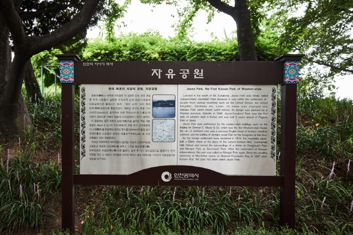 Niché au sein du mont ungbongsan dans la ville d’Incheon, le parc Jayu fut autrefois appelé parc Manguk puis parc Seo lorsque le pouvoir japonais s’est durci. Durant la période de la colonisation par le Japon, il y avait un autre parc appelé parc Dong (Parc de l’Est), qui fut élaboré et utilisé en tant que sanctuaire par les japonais.