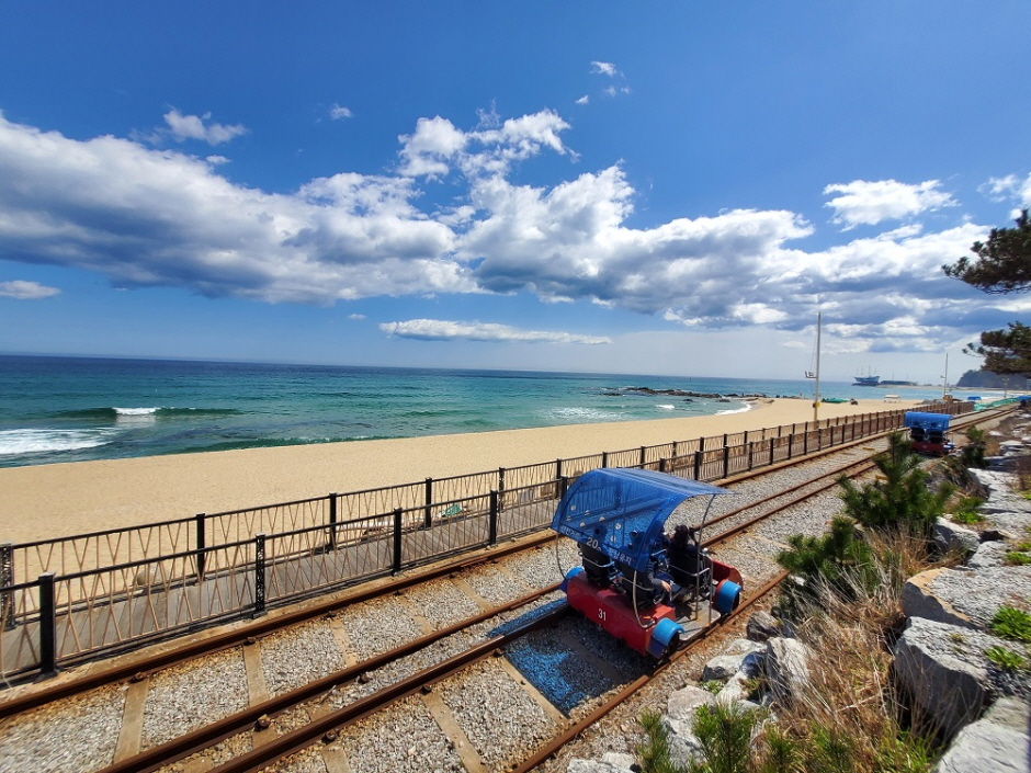Le vélo-rail de Jeongdongjin est une étape touristique incontournable dans la région Gangwon-do. Ce vélo-rail permet aux visiteurs de profiter des paysages et de l’air frais du littoral en passant par divers secteurs touristiques à partir de la gare Jeongdongjin.