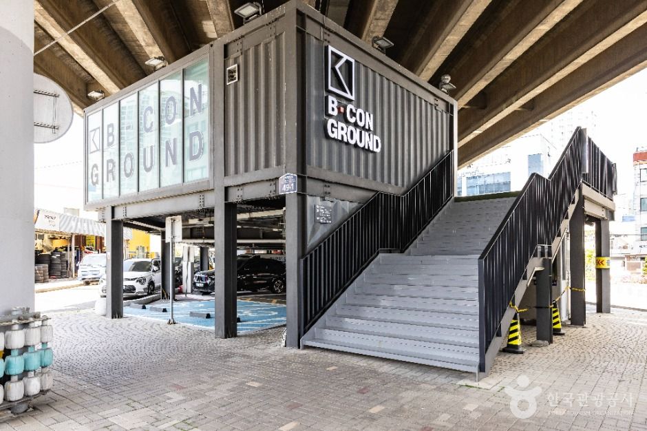 B-Con Ground tire son nom de la combinaison de B pour Busan et de CON pour container, porteur du sens « contenir Busan ». B-Con Ground est un espace réaménagé et régénéré par la ville de Busan sous la voie surélevée de Suyeong, un espace jusque-là inutilisé. En reconnectant un quartier divisé et dégradé par la voie surélevée et en offrant un espace culturel insuffisant, il est devenu un complexe culturel intégré du quotidien.