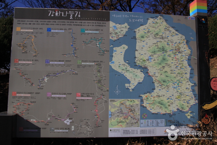 Les sentiers sont sur l’île de Ganghwa qui détient de nombreux vestiges de la dynastie Goryeo qui sont importants pour l’histoire coréenne. Les forteresses qui protégeait l’île contre les invasions de la Mongolie sont encore debout et un grand nombre de palais de Goryeo et des sites funéraires royaux se trouvent aussi dans la région de Ganghwa.
